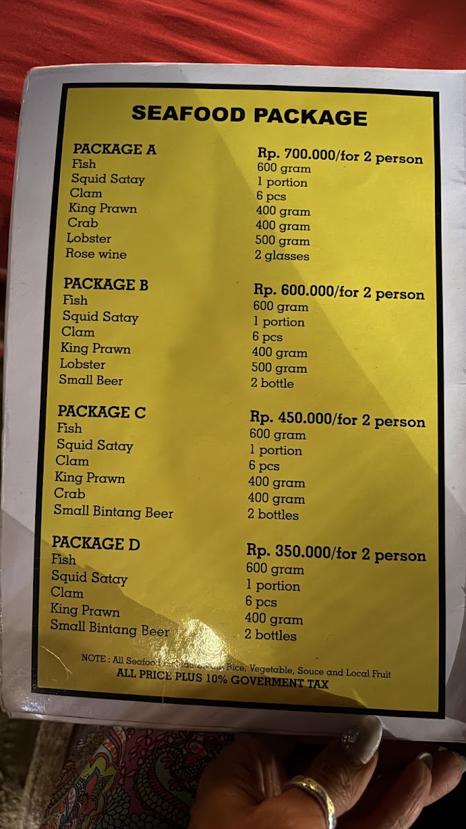 Welcome to Made Bagus Cafe Jimbaran, a hidden gem on the stunning shores of Jimbaran, Bali. This charming café specializes in delectable seafood, offering everything from grilled fish to shrimp in savory sauces. With a menu designed to impress, patrons can indulge in mouthwatering packages that can serve multiple people, ensuring both taste and value.